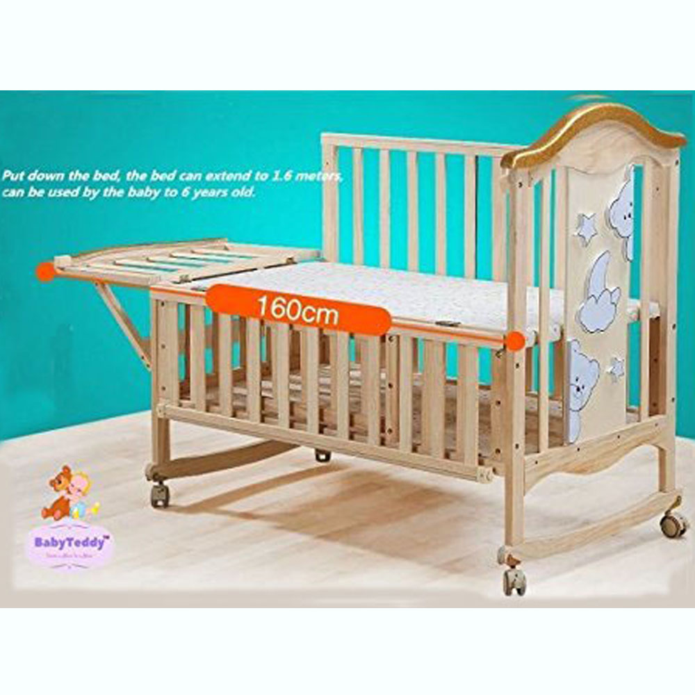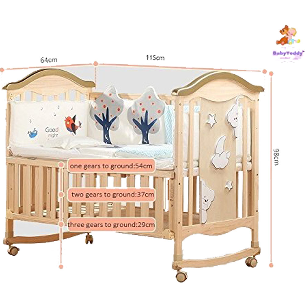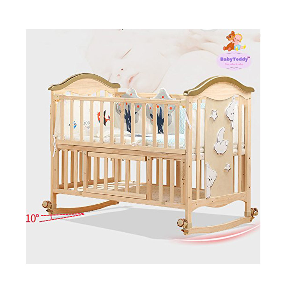 BabyTeddy® 9 in 1 Convertible Forest Theme Baby Crib Wooden Cot Bed Swing Desk with 6 Piece Bedding