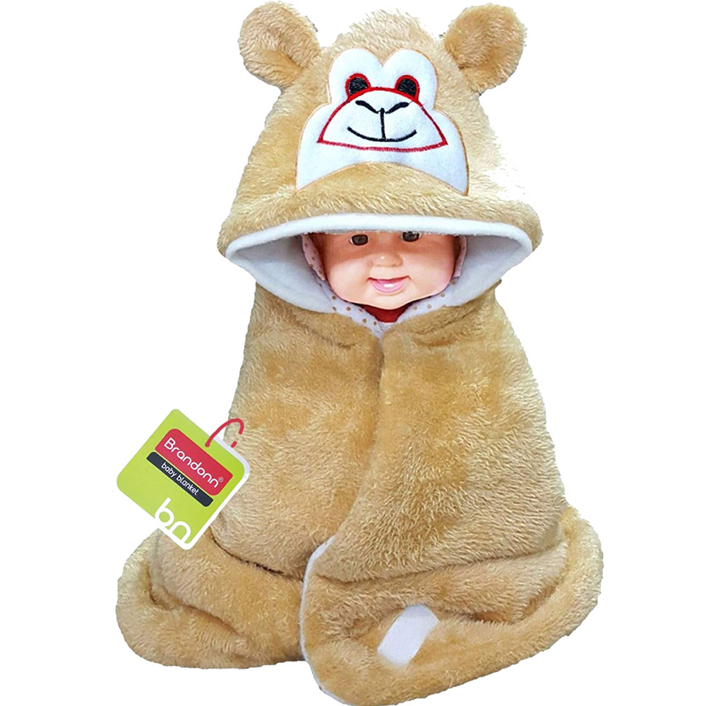 Brandonn Smiley Hooded Blanket Cum Wrapper for Babies (Beige)