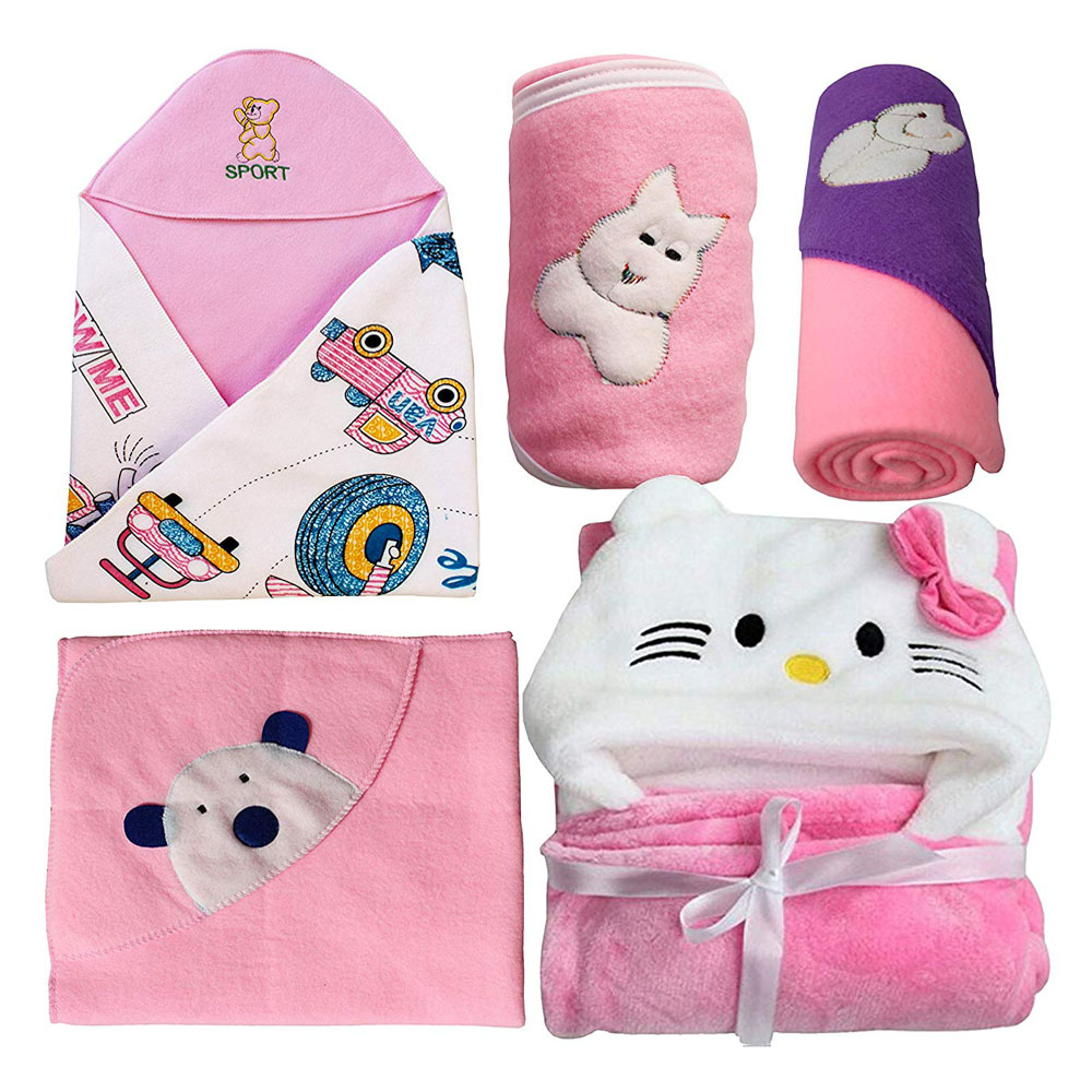 My Newborn Baby Wrapper Blanket Daily USe Gift Hamper-Set of 5 Pcs (Kitty-Pink)