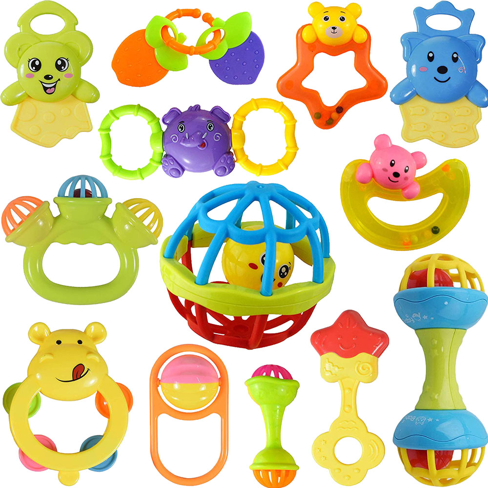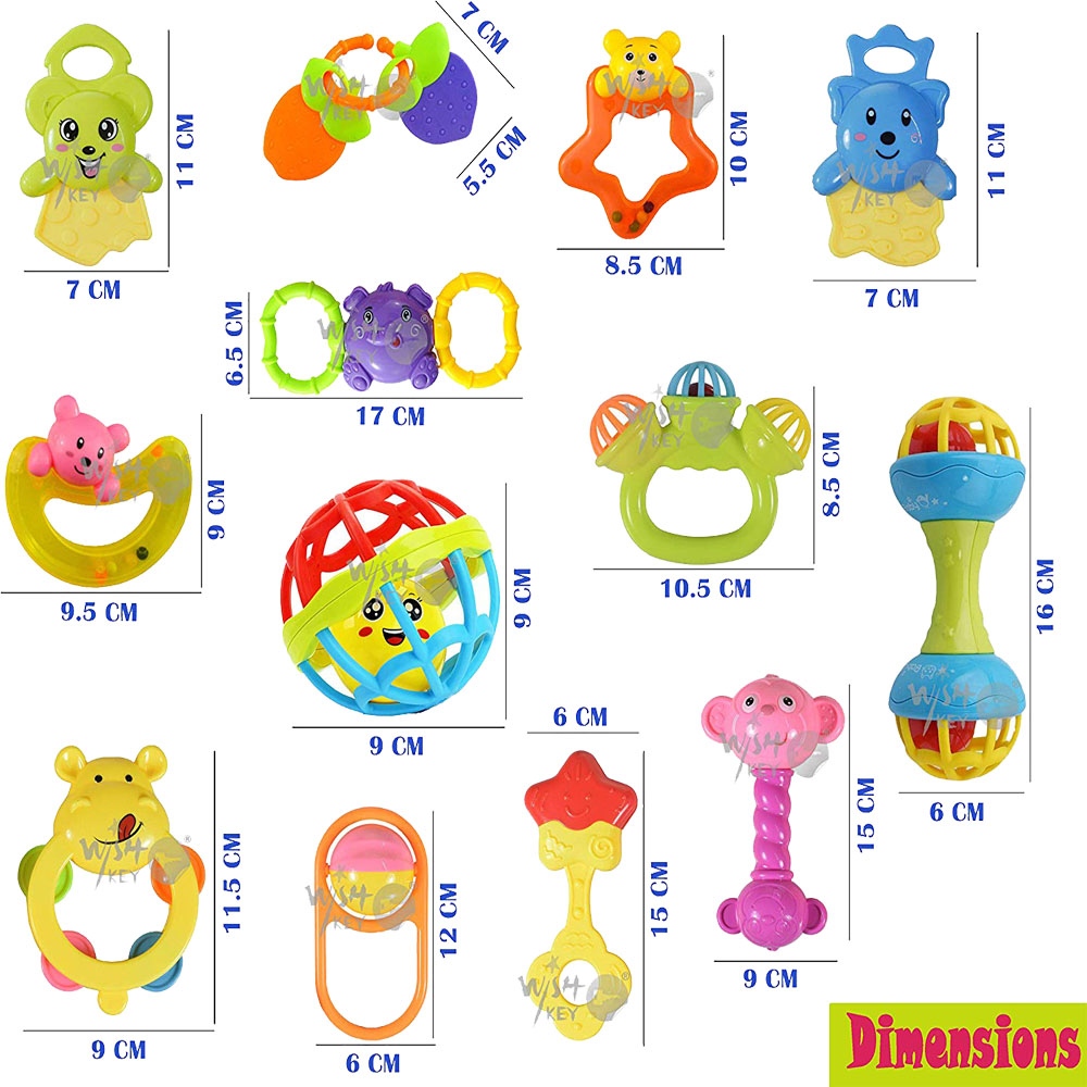 WISHKEY Colorful Non Toxic BPA Free 10 Rattles and 3 Teethers Toys Set for Babies ,Infants