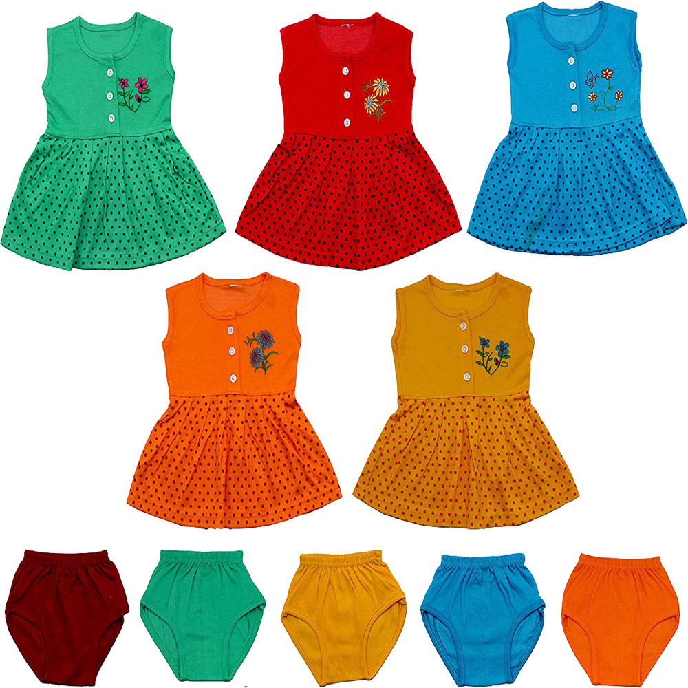 KIDDY STAR Baby Girls Cotton Dress Set (Multicolour, 6-12 Months) - Pack of 5
